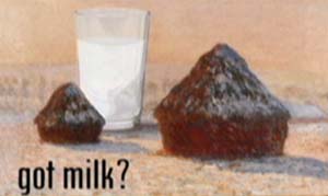that were so popular in Claude Monet's time. Modern x-ray technology has revealed that this masterpiece was originally painted with a giant glass of milk off in the distance (as shown here) and was to be used to kick off the now famous