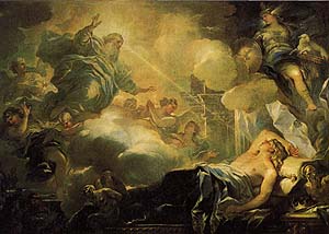 Several of the other members of the League of Justice are also present to offer their support and to lend their super powers if necessary. In the upper right we see Captain America and Lamb Boy. Thor (barely visible in the lower right), Wonder Woman and Jesus Christ Superstar are also in attendance. Many people are often surprised to learn that the Son of God himself was a card carrying member of the League of Justice.
